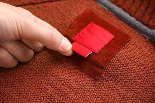 - Классическая нашивная этикетка, располагается параллельно шву воротника или изделия.