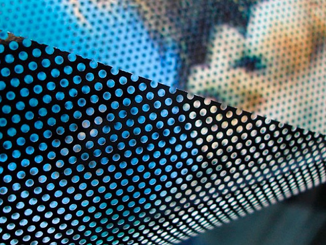 Используется для рекламы на стеклах автомобилей, витринах магазинов, остановках и фасадах — снаружи видно яркое изображение, внутри сохраняется видимость. Легко клеится благодаря перфорации (воздух выходит через отверстия), подходит для изогнутых поверхностей.