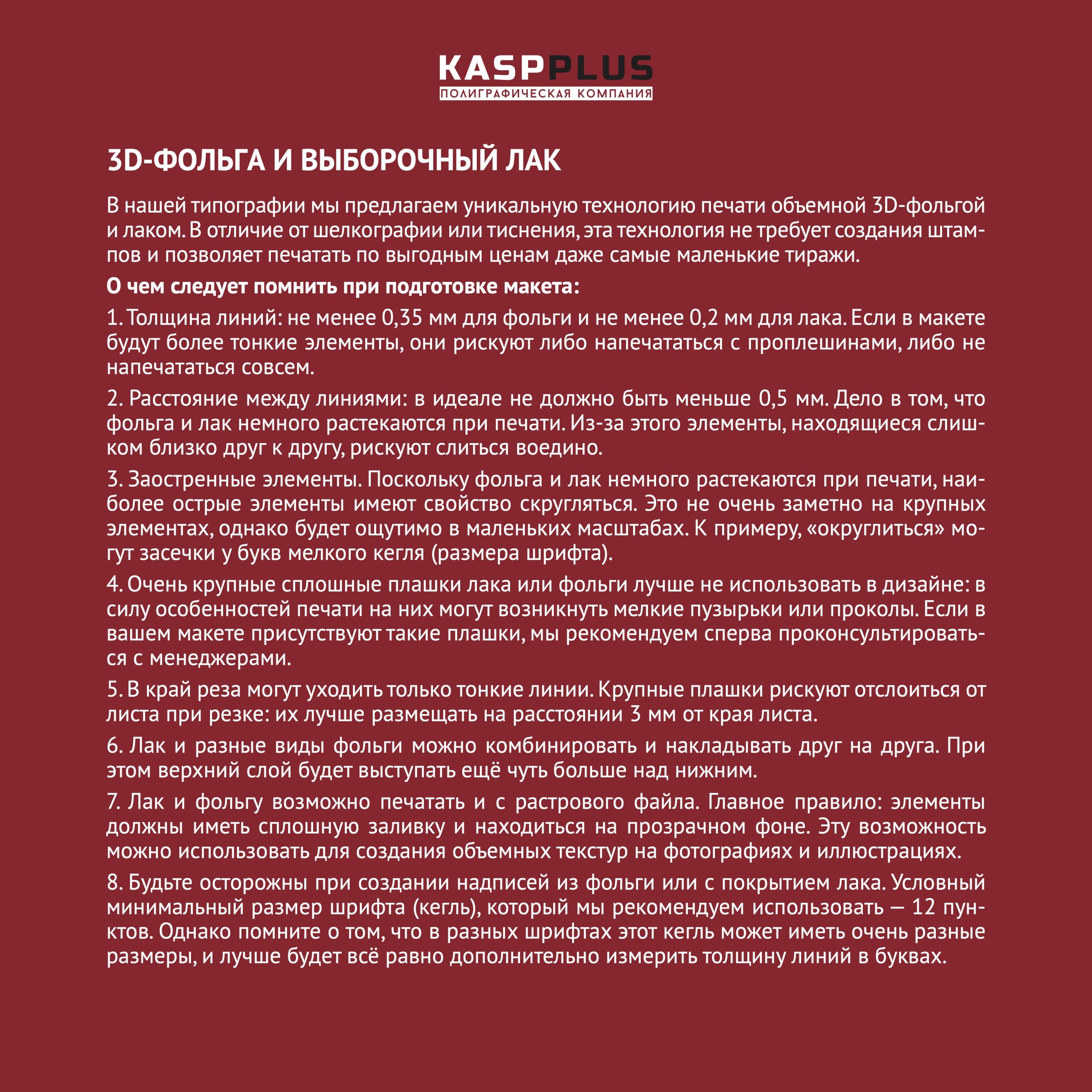 • Горячее тиснение фольгой золото «HotGFoil» или серебро «HotSFoil».